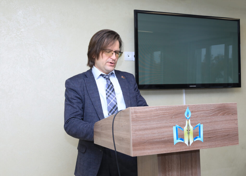 С докладом выступил проректор по учебной работе В.В. Моисеев, который подробно рассказал о значении семьи в обеспечении демографической устойчивости, укреплении суверенитета и независимости Беларуси.